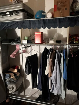 宽敞高大实用。非常好用,比实体店便宜很多,衣服有地方放了,还不占地方,总之还是很不错的。