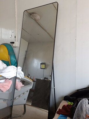 外层的金属边框很窄、显得镜子部分很大,表面光滑不刮手。镜子自带的架子可以打开各种角度不占地方,也可以壁挂或者直接放墙边,很适合在家作穿衣镜,镜面完美。