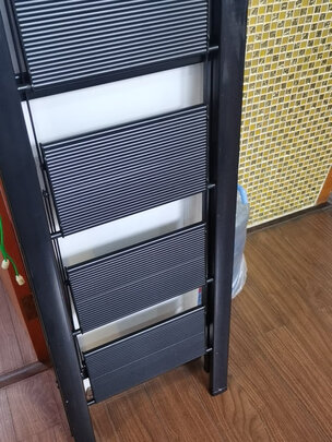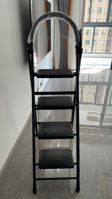 很好的梯子,很结实耐用的样子。而且不重。站在上面很稳。很安全,很好用,值得拥有更值得购买。建议有需要梯子的友友放心大胆的购买,真的很好用。今天下午梯子送到后,就迫不及待的站上去试了一下,我身高1.72米,站在第三台就可以轻松够着楼顶了,取放衣柜里的东西都很容易