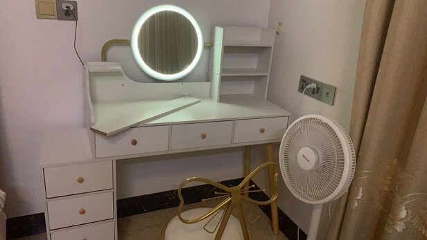 梳妆台款式精美,做工细致,没有色差也没有异味,美观大气,值得五星好评。