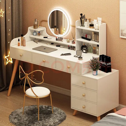 - 商品名称:米昊 梳妆台卧室现代简约小户型网红多功能书桌储物柜一体化妆台桌子 【四抽方镜】暖白色80*40CM 组装