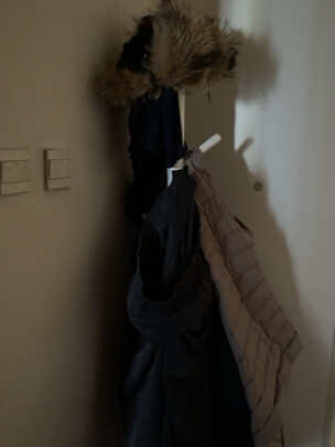 外观样式:外观设计简单大方。;商品质量:用了一个多月了,质量真是不错。;配送服务:包装很到位,配送方面也没有可挑剔的地方,感觉挺满意的。;产品材质:材质结实没有异味,用了这么长时间没有掉漆,应该不会发裂。;承重能力:能挂衣服的地方都挂满了,承重反正我是满意的。;适合场景:家里任何地方都可以用,简单大方百搭。