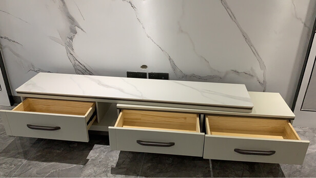 电视柜收到啦。家具质感很不错。很结实,实用设计很独特。非常满意。