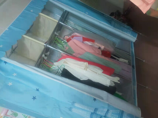 这个布衣橱外形样式挺好的,设计的很合理,使用起来靠得住也很方便,可以放进很多东西,承重能力也可以,买过很多次了,以后还会经常购买。