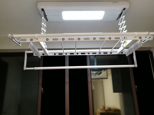 宝贝收到好长时间了,现在终于安装好了,好太太的晾衣架还是很不错的,纯白色的高端大气上档次,大小也刚好,如果衣服多了两头还可以拉长的,中间的灯也很快给力,整个阳台照明没有问题,可以承受七十公斤重量,师傅安装也很认真,给好评哦。
