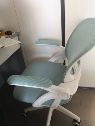 椅子很舒适。颜色也非常好看,档次很好,主要是坐起来舒服,扶手是可以收起的,不用的时候可以推到书桌底下,很省空间。