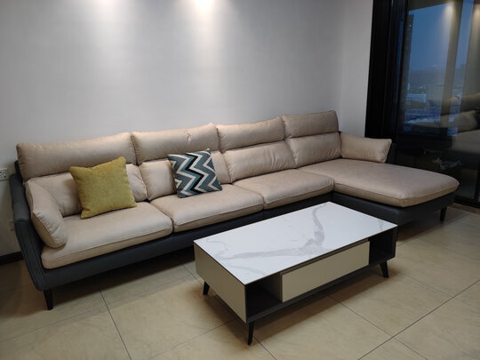 货物配送到家,配送速度快,安装师傅服务到位,沙发很满意,使用了一段时间,沙发回弹速度有点慢,其他的还是挺不错的