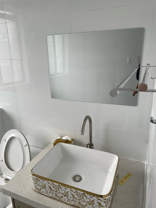 家里老房子的卫生间重新装修了一下,干净了很多,同时把原来的镜子也换掉了。这面镜子送的很快,包装也好,就是小了一点,联系买再大一号的。