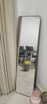 感谢前面说镜子挂低了的朋友,距离地面500挂的镜子,照全身没问题,看着也舒适,照人清晰,显瘦,很适合小户型,安装方便,自带胶,免钉,直接粘上,看着挺牢固。
