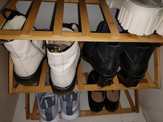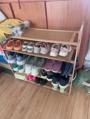 有了鞋架,整齐多了???,拼装很容易,几乎没毛边,放了鞋子后,不怎么摇晃,总体来说还不错,快递小哥也很好,楼梯也送上门,推荐