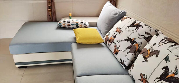我家客厅够宽,这个沙发3.67米摆上去刚刚好,尺寸完美;;送的一整套的枕头背靠,很nice,都不用去买;;颜色搭配也挺好看的,挺满意的,送货师傅也很热情。