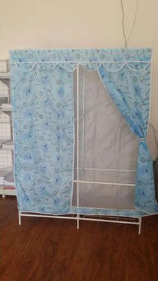 千挑万选,很满意的一次购物,之前用过2个是无纺布的,容易老化不耐用,这款布衣柜是牛津布的很棒,骨架和钢网结实,喜欢的就可以买哟,快递很棒送到家门口了???