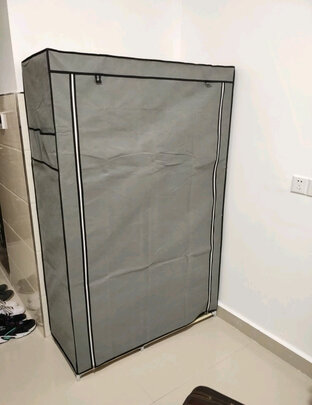 简衣橱收到,安装也很方便,安装提示图清晰易懂,半个多小时就安装完毕了,选了灰色配上白色拉链成品看起来非常不错,选了单人柜,容量还可以一个人衣物绝对能够直放,简洁大方,适合各种人群,京东物流迅速第二天就收到了。