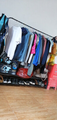 衣架大小适中,做工不错,就是纵向好像容易晃。可以挂5件左右的厚衣服,或者十件左右的轻薄衣服,脏衣篓不大,可以存3天的衣服。