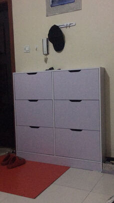 鞋柜尺寸合适,里面的容量很大,安装方便,没有什么异味,鞋子不会到处乱放了