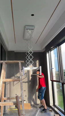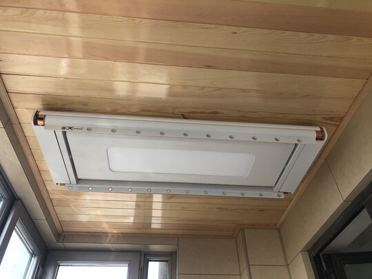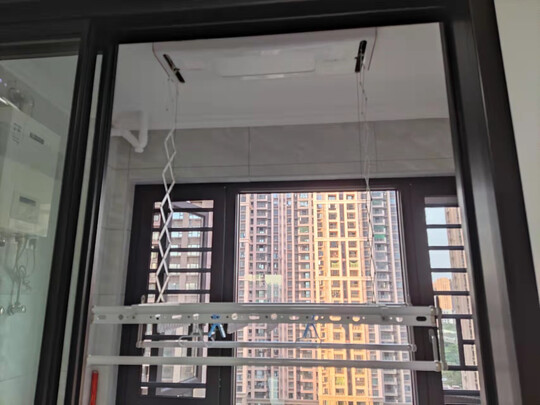 因为不能用传统的,只能买这个电动升降式的,中间客服态度很好,直接把东西拿回去了,效果不错,可以晒被子,也能晾很多衣服,只是没有送衣架,也没有传统的孔