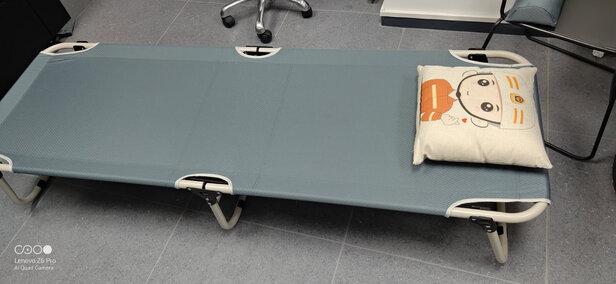 性价比很高的一款午休床,办公室必备佳品,收起来很小,还有一个固定的带子用于捆扎,还配有一个袋子用于收纳。长度足够,我身高174厘米睡上去很合适,一个人睡翻身也不会觉得困难,床很稳,不过前后翻覆。材料颜色也是很耐脏的,适合长期简便使用。