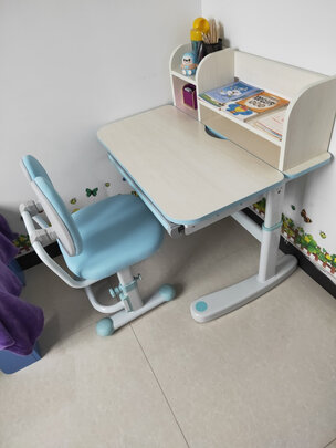 儿子马上上一年级了,一直想买个书桌,商场几乎都要几大千,在京东上看到这个瞬间就爱了,质量杠杠的,漂亮舒适,儿子很喜欢。可以根据身高调节高度,摆在卧室大小刚刚好。