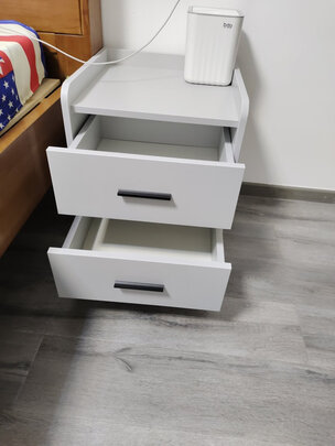 床头柜有点小清新的视觉。材质光滑不粗糙。菱角分明,边缘处有倒角磨圆,不易被磕伤。可以放置手机等物品,放床头柜充电安全,也很实用。