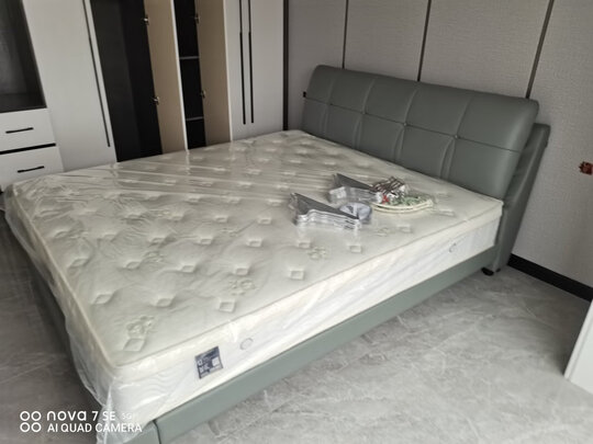 双人床收到了,质量很好,实木的很结实,表面软包设计摸上去非常有质感,很满意。