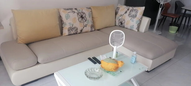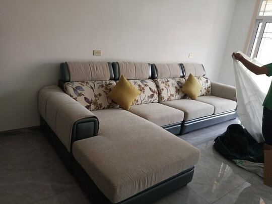 沙发颜色比图片稍浅点,看着清爽些,沙发腿安装时间稍长一点,但是,师傅很耐心的