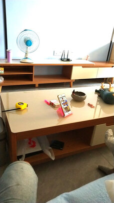 电视柜茶几组合已组装好,我老喜欢这款,面子上的大理石纹路太好看了,收纳抽屉多,以前放在外边杂乱东西太多,现在好了,全部收到抽屉里面,安装师傅特别认真,把抽屉把手调成一条线,看起来真舒服,在这里再次感谢师傅们,辛苦!感谢京东服务平台,有问必答,儿子说他也特别喜欢,看起来高大尚,完美!