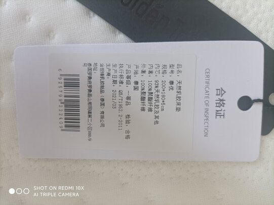 第一次来买乳胶床垫,收到之后感觉好重,打开一看,非常满意。躺着睡眠也好了很多。金橡树真的不错。打算下次再买一条。
