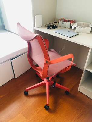 我的房间有一个新的电脑桌,配上了这样的一把椅子很方便。配件齐全还多送了一个螺丝钉还有安装螺丝钉的工具,大概20分钟到半个小时的样子就安装好了,非常好的。