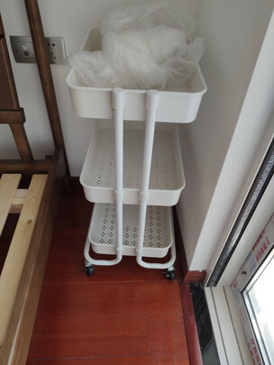 安装非常简单,装好之后稍有不平,调整轮子高低就好了,整体稳固性还是不错的,造型不错,放着挺美观的,先放在床头当床头柜,如果需要更换,也可以放在厨房或者放在客厅使用,功能性还是很强的,如果价格再美丽点就好了
