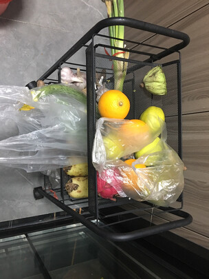 外观样式:很小巧,我选的三层的,放到厨房放一些蔬菜瓜果,够用了,安装挺简单的,扣住即可,很结实。;商品质量:很有份量,碳钢的,黑色的漆面处理的也很很好,哑光面,磨砂质感。;承重能力:承重毕竟不是放太重的东西,蔬菜瓜果没问题。