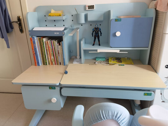 收到货以后孩子就一直问什么时候能给过来安装,早就迫不及待的想试坐一下他的小椅子了。这套桌子,能放下好多书本,收纳功能特别棒。