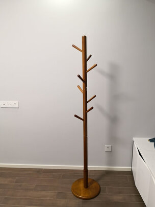衣帽实木架创意简约,橡胶木材质,棕色款架子,木头很沉,加粗的主杆,加厚的底盘,做工精细,漆面均匀光滑,很有质感,包装很严实,安装方便。京东发货很快,京东物流配送快捷。