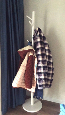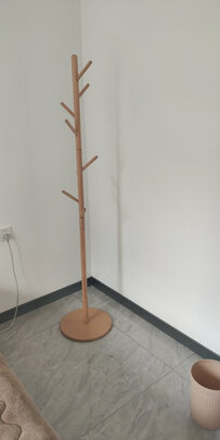 放在客厅使用。冬季进屋脱下的外套都挂上了。有点轻,取衣服会有摇晃,可能圆盘底的更稳当。是榉木还是松木也看不出来,做工可以,光滑无毛刺,毕竟是工程产品。