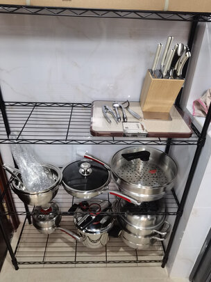 安装方便,就是还没有收拾有点乱,放到厨房厨房显得井然有序,赞?。就是没有白色的,有白色的就弄一个房客厅里面,上面放一些水果等杂物也不错。