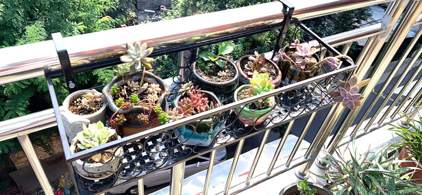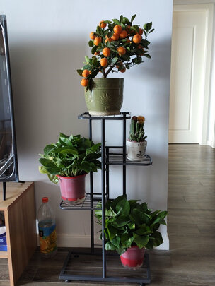 花架收到了,第二天就去花卉园买花了。摆好还是很好看的。
