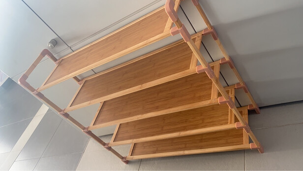 这款简易鞋架挺好的,安装简单易操作(老人都会安装),轻便!材质虽然是塑料的,但挺结实的,每层可放两双鞋子。自从买了它,门口鞋子摆放整齐,很实用!