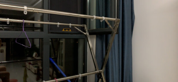 到货很快,隔天就收到了,包装完好,没有破损。店家态度也很好。收到后就组装了,质量还不错,中间那个横撑可以支撑也可以作为另一个晾衣杆,可以拉长,晒被子晒被罩很方便,不用折叠,喜欢的一次购物,性价比很高,值得购买的。搬新家最喜欢的物品