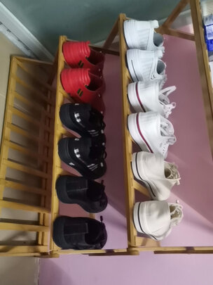 首先,鞋架收到了我十分满意,虽然手被扎了一下但这鞋架就是可以做到被扎一下还让人点赞,所以我现在就在用被扎的手在给卖家点赞。然后说说为什么满意:1.质量很好。虽然是鞋架但我买来是当小书架用的,放在床边学习很顺手。要说的一点就是书可比鞋重太多了,所以我说质量真的很好。2.颜色好没有异味。颜色古朴淡雅样式简洁大方,拆开包装除了一股竹子的清香味没有别的味道,这款“小书架”当时就喜欢上了。3.组装方便简单。4.店家你得给我吹吹手,都被扎了一下依然挡不住喜欢,唉,愁死我了。5.不接受完美主义者的反驳,四十几块的东西做到这个程度性价比已经很高了。6.全部五星好评。