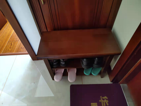 简单、大气的一款换鞋凳,我家门口只有六十几厘米的空间,60cm这款刚好放下,每层能放两双男鞋或者三双女鞋,既可以坐着换鞋又美观,非常满意!