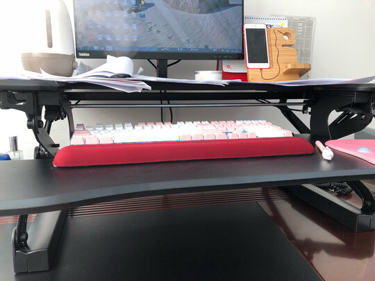 办公室总坐着对哪儿哪儿都不好,同事推荐了乐歌的升降电脑桌。安装比较方便,只是对女孩子来说是重了,有人帮忙完全不成问题,几分钟即可以搞定。;;质量不错,辛苦快递小哥了。