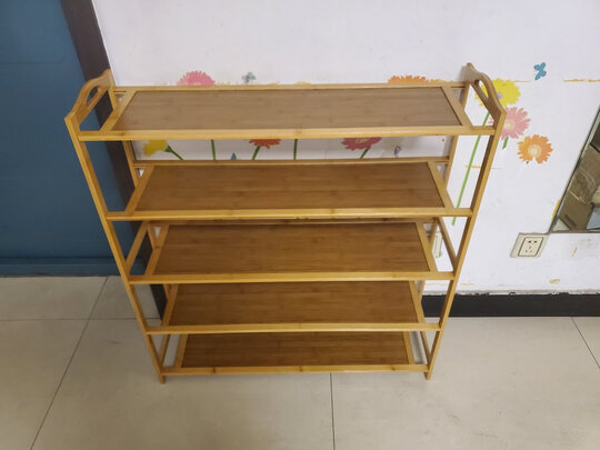 鞋架收到了,就迫不及待的装上了,一个人也很好安装,只需要一把螺丝刀就能轻易搞定,楠竹的看着非常漂亮而且环保,有五层可以放很多鞋子,收纳鞋子也相当多的,节省了很多空间,看着也整洁,承受能力目前还可以,就是不知道以后会不会变形。