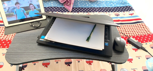 昨天买的,今天上午就收到了,很快就可以进去学习状态了。包装盒完整,放床上也很稳,放一个电脑刚刚好