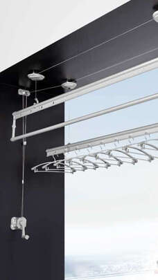 小巧实用的晾衣架已经安装完成,适用于小户型,以前用的其他牌的,用了几年坏了,换了好太太的,质量过关,不容易坏,这次直接选好太太