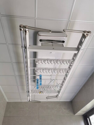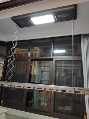 晾衣架颜值够高 机身还特别薄 不影响开窗 收起来就当吸顶灯用了 很满意的体验