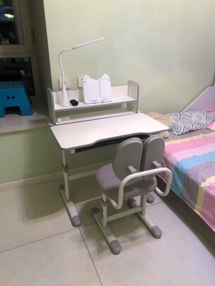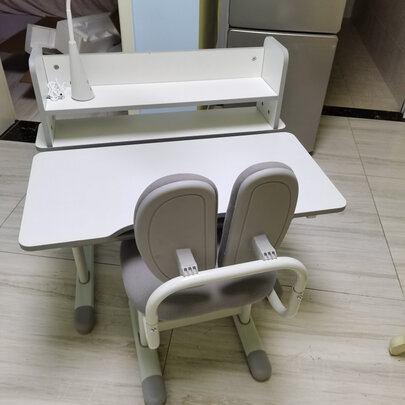 给女儿买的学习桌,现在虽然还她还小,房子也很还没有入住,只是买来先备用。桌子买来就装上了,没有一点味道,板材也很厚实,做工挺好的,椅子都很结实,希望她能喜欢。