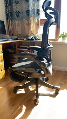 人体工学椅,和显示器键鼠都特别搭。坐起来很舒服,真的真的很舒服。但是扶手不可调,总感觉扶手矮了,可能是因为我身高的原因。组装不难,但是有大问题。没有标注螺丝的扭矩,我根本不知道螺丝该拧多紧,只好大力出奇迹。包装不错,很结实,我打算留下来搬家的时候用。尼龙脚真的不比铝合金差,又轻又有韧性,铝合金完全没必要。但是,我感觉价格还是高了。如果400以下可以入手必成爆款。
