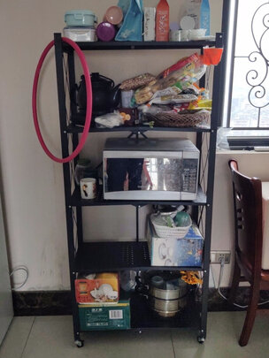买了一个架子来放微波炉,还有其他一些杂物,零食什么的。安装非常的方便,打开就行了。就是中间可能不能完全得铺平。商家说是折叠款,不影响使用,总体还是非常不错的。