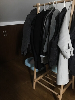 买来挂穿过的衣服,没有什么味道,榉木材质也很有质感,本来想买铝合金那款,但是后来想想木质的放房间比较柔和,所以选择了这款,没有选错