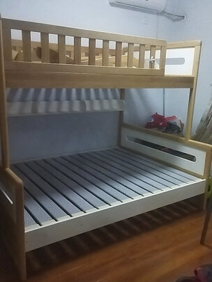 实木的木板和厚实,表面很光滑,做工方面对被惊喜一家安装好了,很结实稳固。
