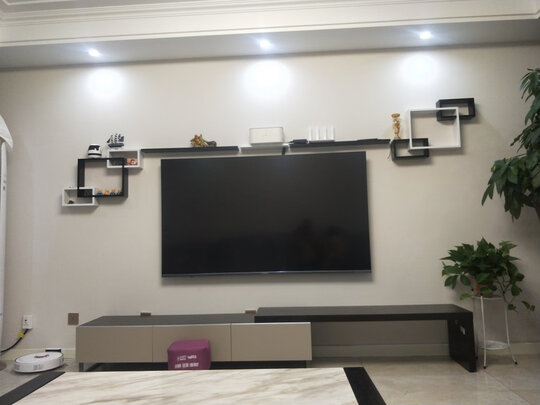 架子看外观还算比较精细,只是材质是全密度板的,并不是详细参数里面写的“板木结合板材“,在意材质的慎拍吧!